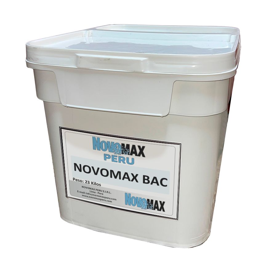 Novomax BAC es un probiótico biotecnológico formulado con bacterias heterotróficas que degradan de manera eficiente la materia orgánica en lodos y residuos acuáticos. Su acción mejora la calidad del agua en piscinas y sistemas acuícolas, reduciendo contaminantes y estabilizando el ecosistema.